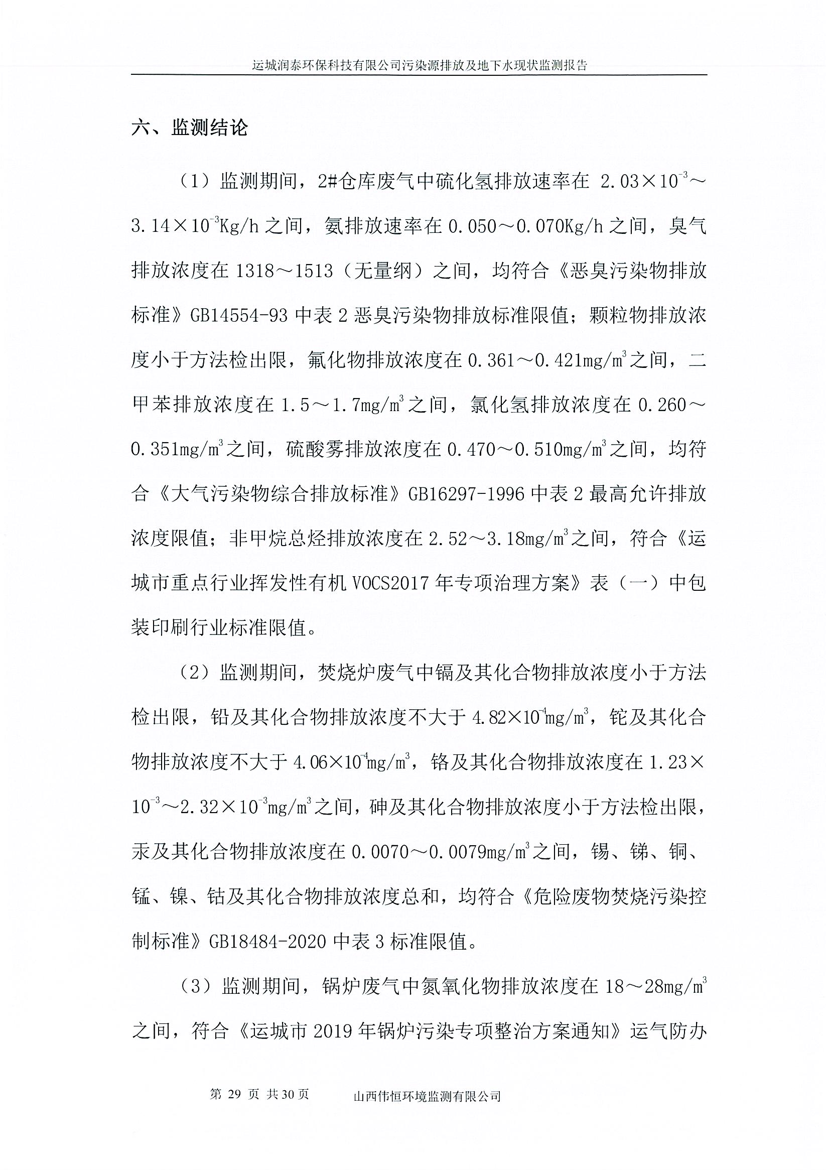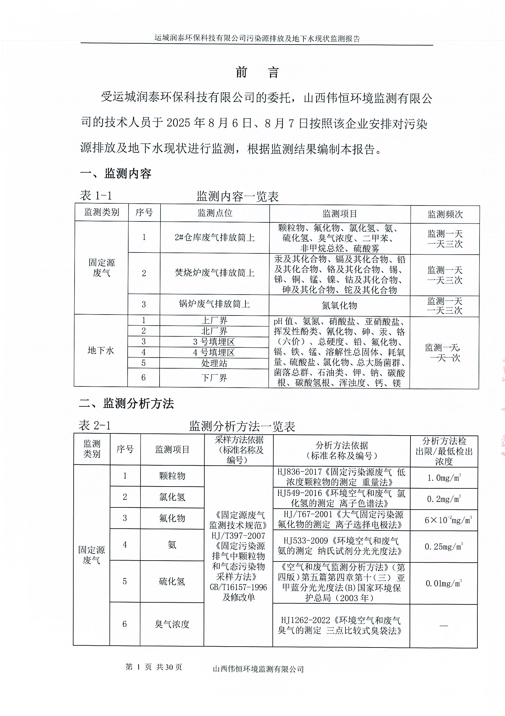 2025年潤泰環(huán)保八月份自行監(jiān)測報(bào)告