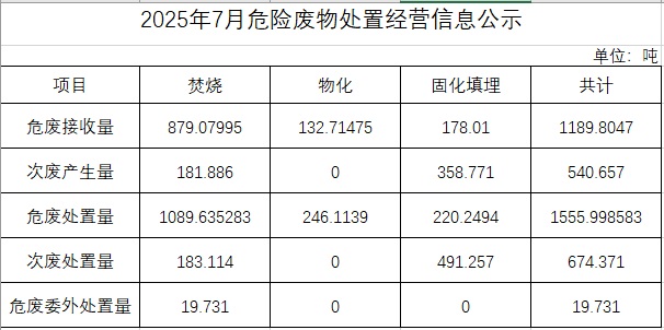 2025年七月危險(xiǎn)廢物處置經(jīng)營(yíng)信息公示
